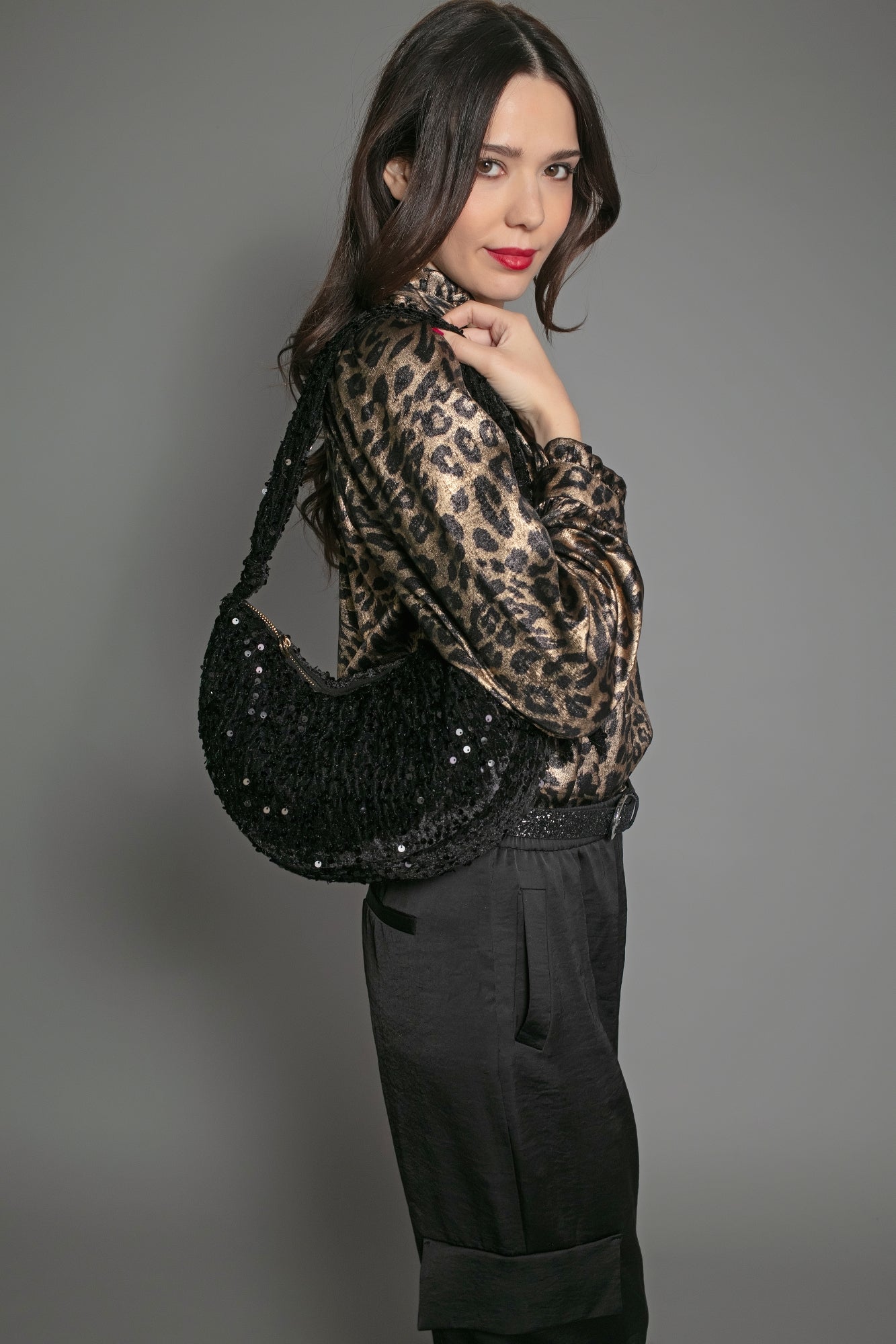 NESSA HALF MOON SEQUIN BAG-BLACK