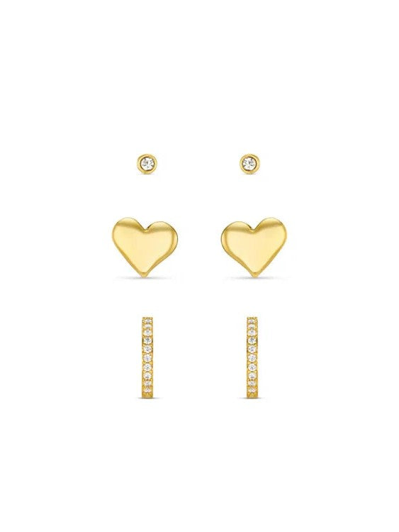 Sweet meets sleek. The Molten Heart & Pavé Hoop Earring Pack blends heart motifs with sparkling pavé hoops and studs for a modern, wearable ear stack that can be layered or worn solo.