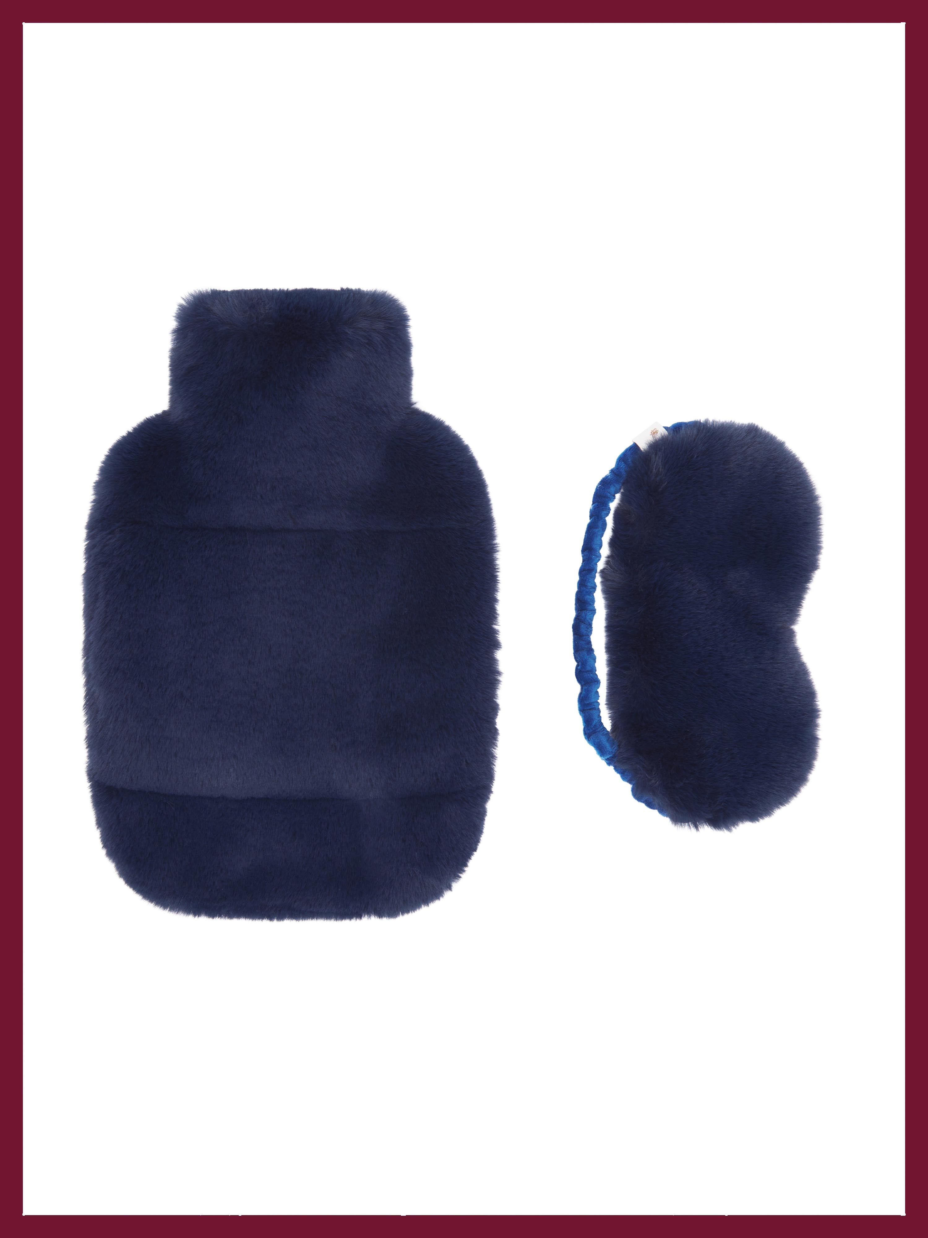 The set includes a matching eye mask and hot water bottle, both made from luxurious faux fur.