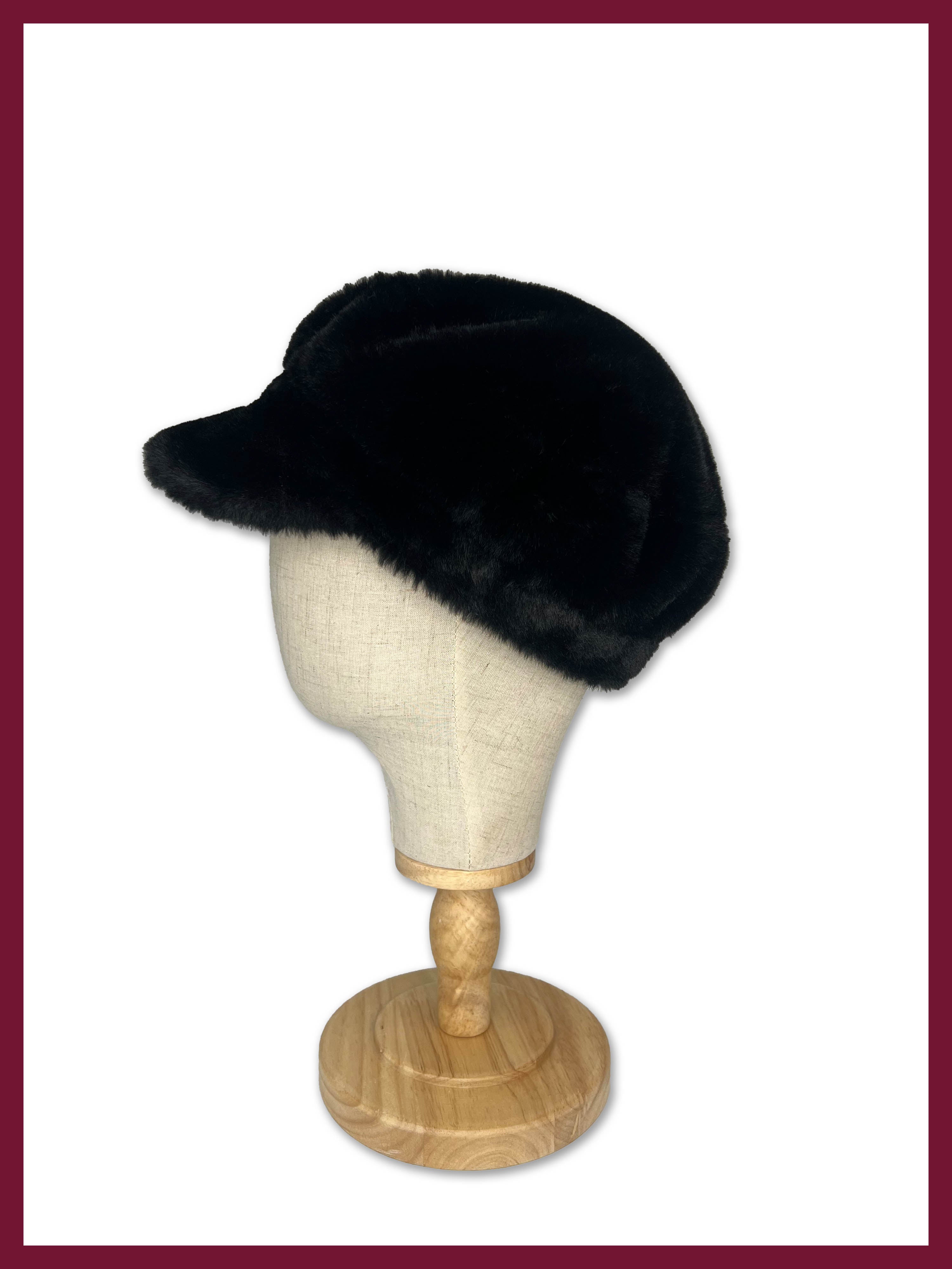 - This luxurious cap channels classic Baker Boy style with a cosy, faux fur twist, bringing warmth and glamour to your seasonal wardrobe.