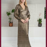 - Crafted from textured gold fabric that flows beautifully, this maxi dress features a flattering underbust seam and long sleeves with charming ruched cuffs.
