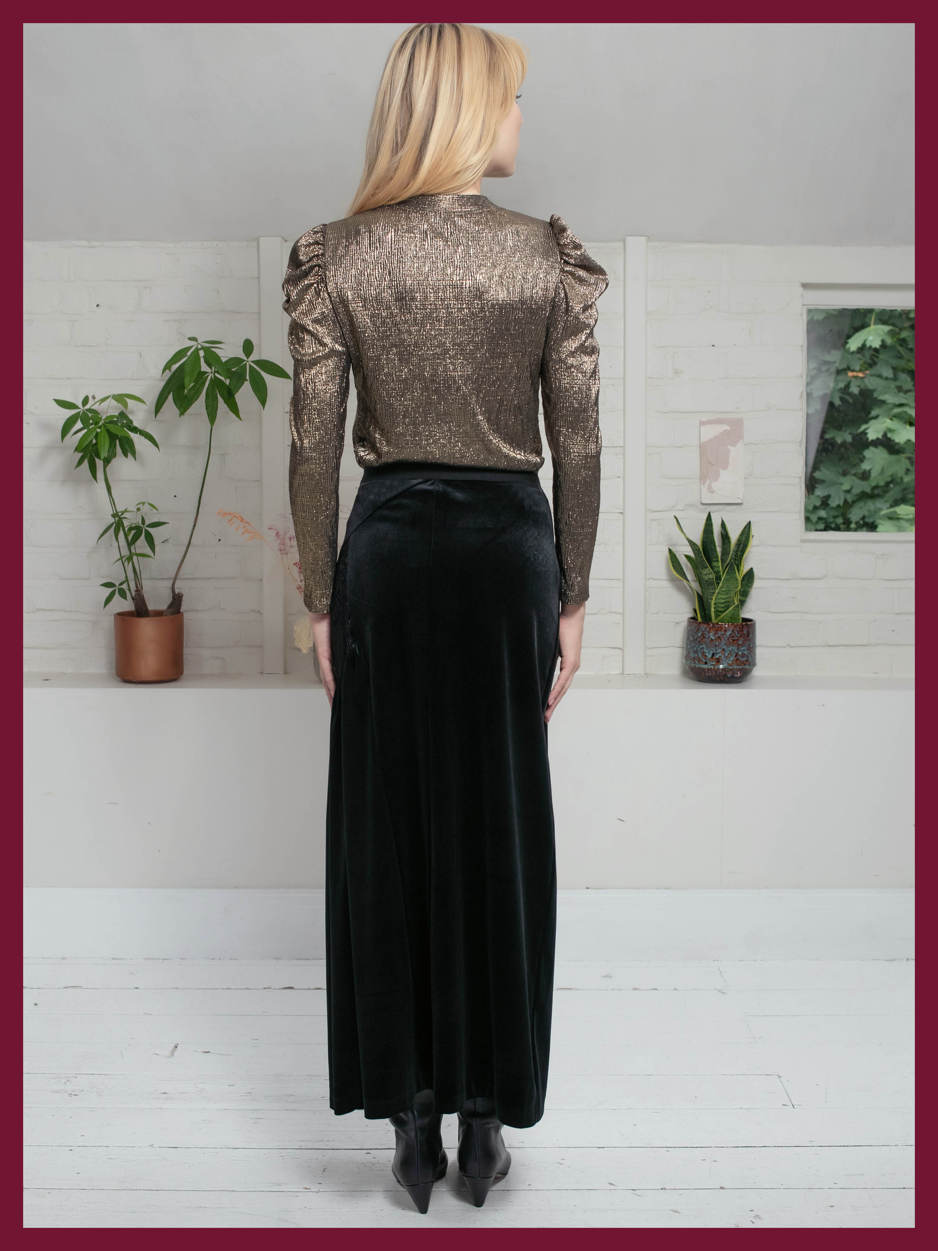 • Long sleeves, a high neck, and ruched shoulders add a modern twist, turning up the fun and glam on your party outfit.