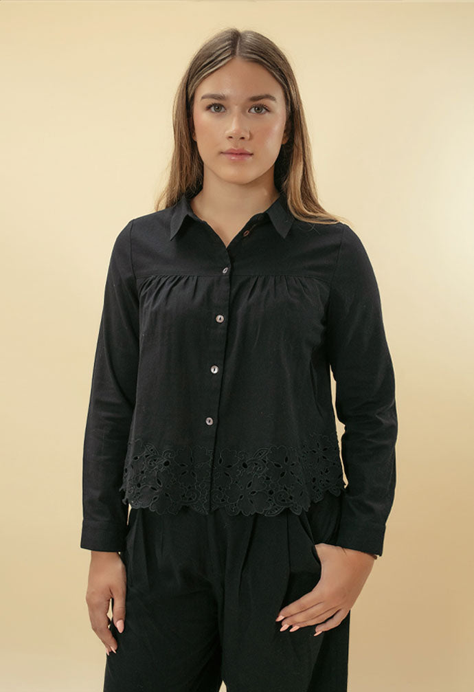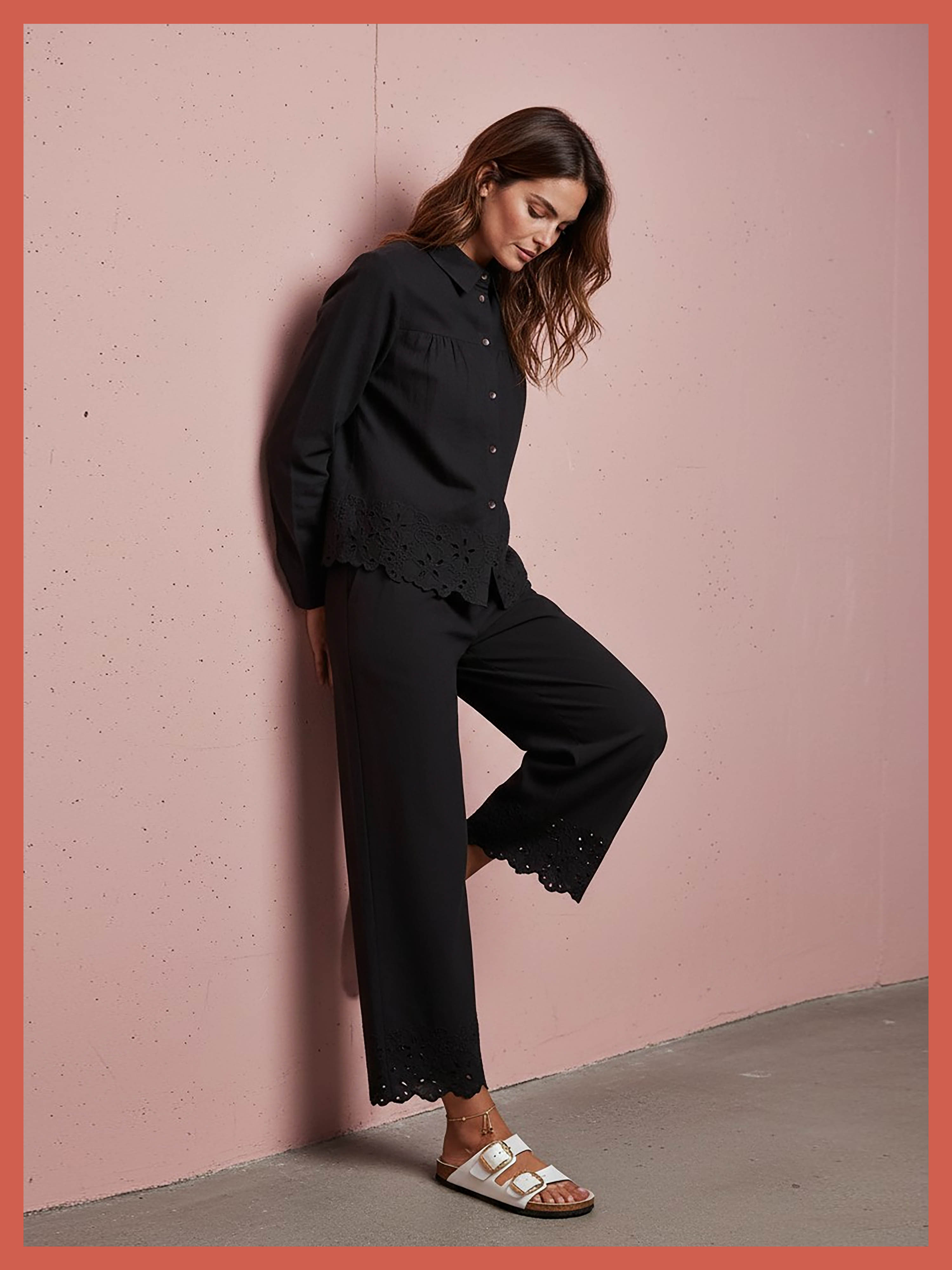Sirena Embroidered Cutwork Trouser - Black