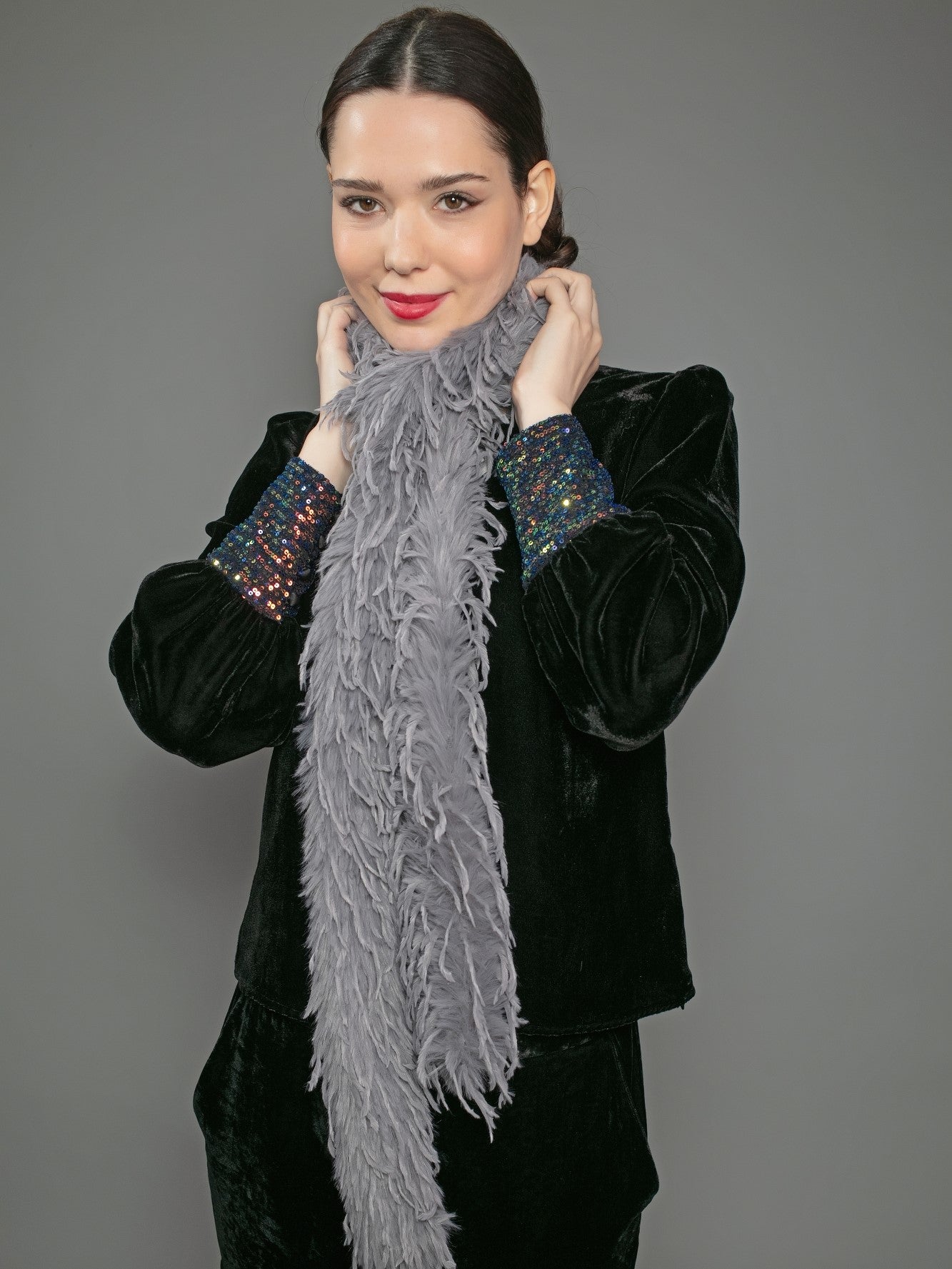 Wrap yourself in style with the Marmot Faux Fur Scarf, available in Cream and Grey. This luxurious scarf features the same feather-like faux fur as the stunning Marmot Jacket, making it the perfect accessory for staying cosy and chic all winter long. Whether you double up with the Marmot Jacket for a coordinated look or pair it with your favourite winter coat, this scarf will add a touch of glamour to any outfit.