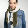 Stripe Pasha Scarf in Khaki Mix – Fluffy Faux Fur with a Pop of Colour